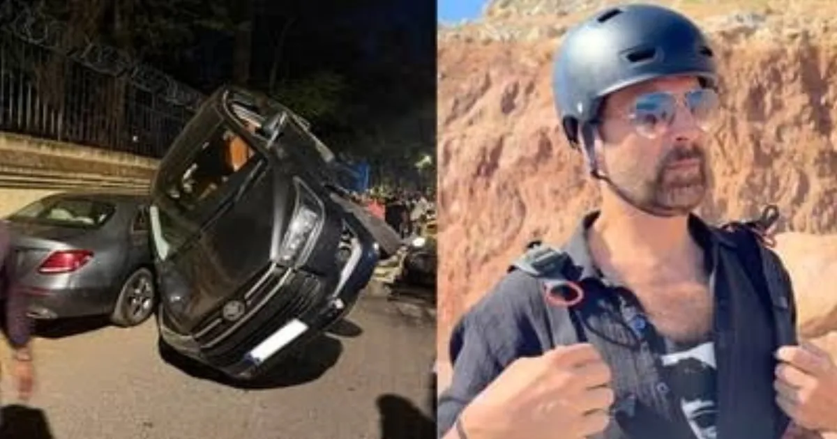 A dramatic road accident involving Bollywood Superstar Akshay Kumar’s security vehicle unfolded on Monday evening in Mumbai as the actor and his wife Twinkle Khanna were heading home from the airport to their Juhu residence. The incident occurred when a speeding car rear-ended an auto-rickshaw, causing the three-wheeler to flip over and slam into the escort car trailing the couple’s convoy. The forceful collision sent the black security SUV toppling onto its right side, blocking part of the busy road and drawing immediate attention from passersby.