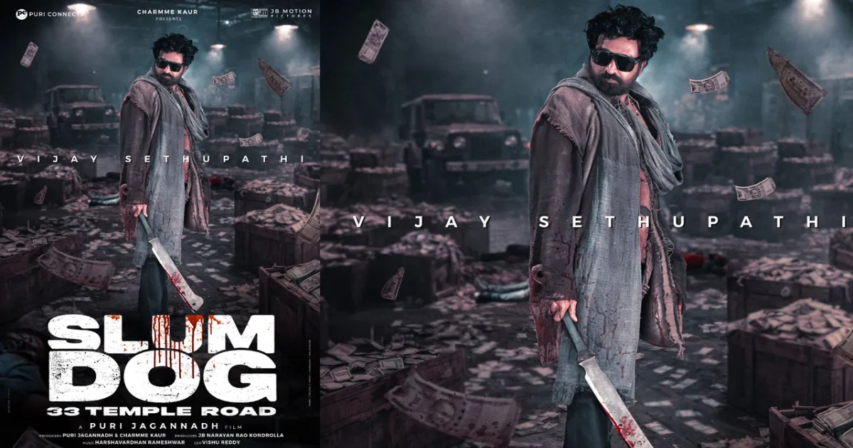 Celebrated filmmaker Puri Jagannadh announced the title of his upcoming collaboration with actor Vijay Sethupathi as “Slumdog – 33 Temple Road” on the occasion of Sethupathi’s 48th birthday. Sharing the news on X, Jagannadh posted the film’s poster showing Sethupathi standing amidst chaos, wielding a blood-stained sword, hinting at a raw and intense storyline.