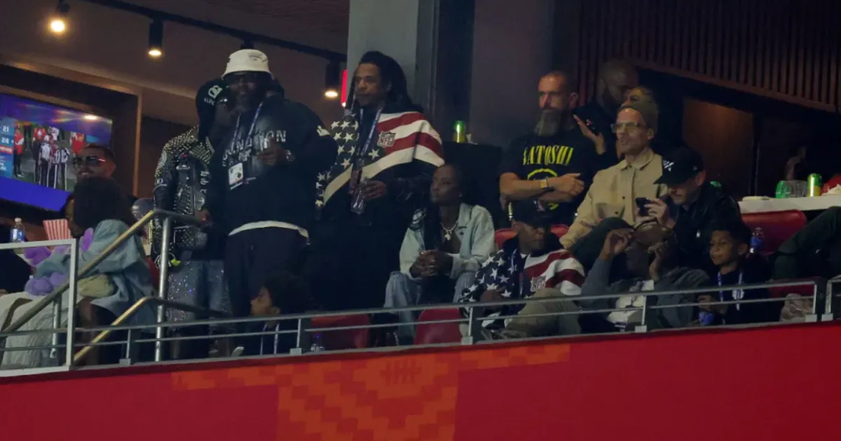 A photo allegedly showing rapper Jay-Z seated with Twitter co-founder Jack Dorsey at the Super Bowl has gone viral on social media. In the image, Dorsey appears to be wearing a T-shirt with the word “Epstein” printed across it, triggering widespread speculation and online debate. The picture began circulating amid renewed chatter around high-profile names mentioned in recently released Jeffrey Epstein-related files.